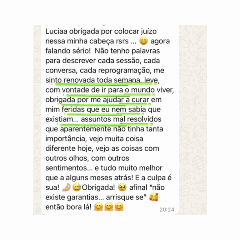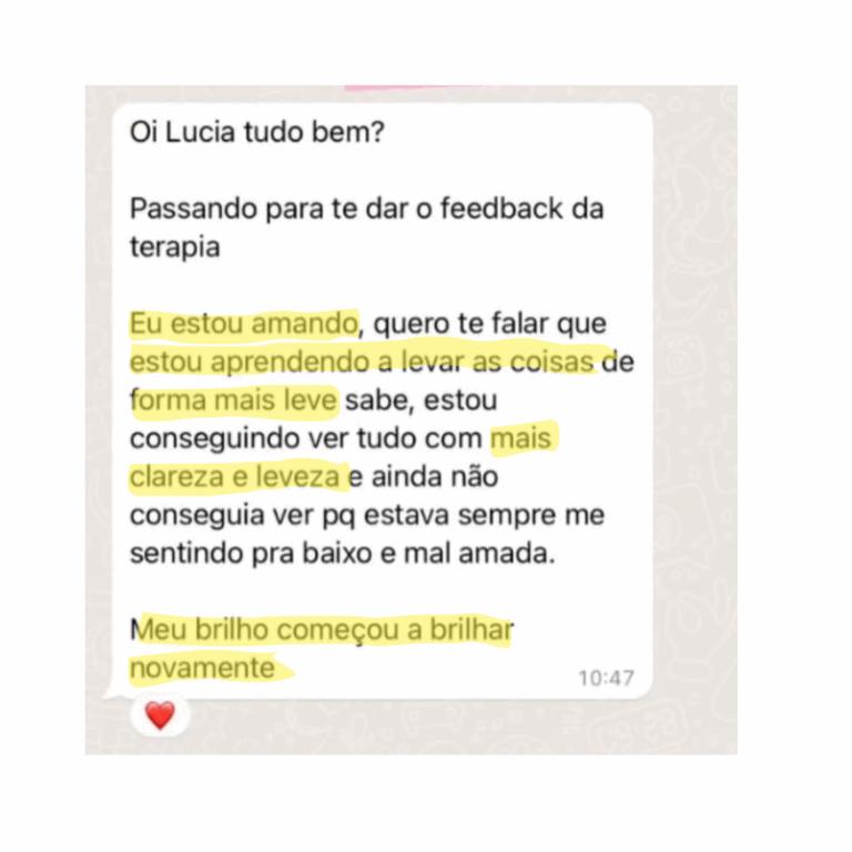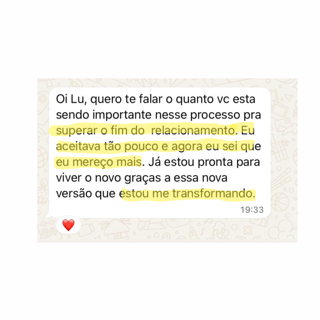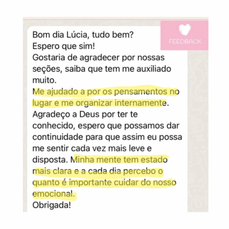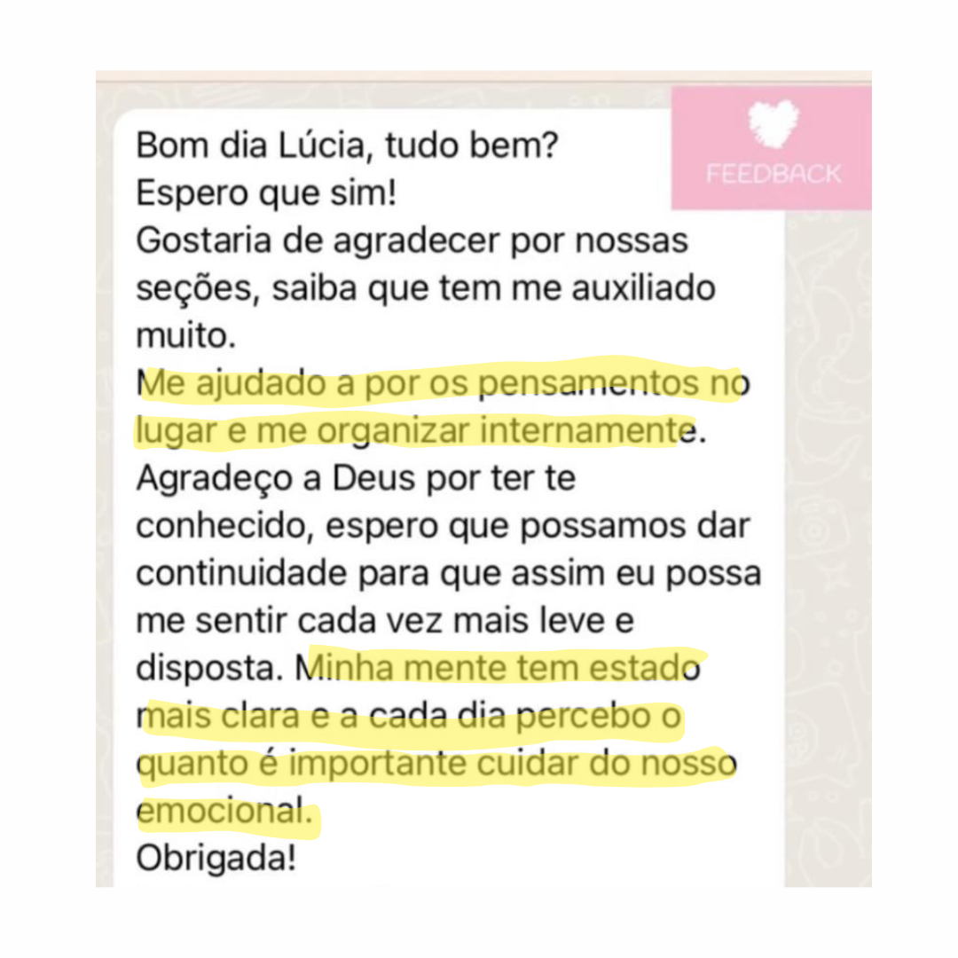 Ao longo dos atendimentos, você vai identificar o que realmente deseja viver, fortalecer sua autoestima, se posicionar com segurança e criar relacionamentos saudáveis, com reciprocidade e respeito.
